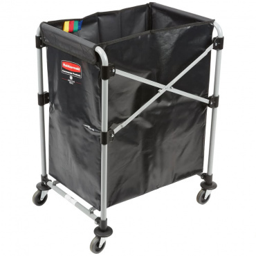 Новая серия тележек для сбора и транспортировки белья X-cart. Это высокоманевренная, легко складываемая тележка для белья изготовлена из нержавеющей стали с порошковой окраской, что дает полную защиту от ржавчины, а рама выдерживает до 100 кг нагрузки. Тележка для белья используется совместно с виниловым мешком на 150 литров (идет в комплекте), мешок для белья имеет цветовую маркировку, что позволяет произвести разграничение по зонам. На раме тележки установлена защита стен и мебели.